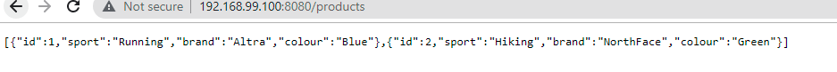 hey -n 10 -c 2 -m GET -T “application/json” http://192.168.99.100:8080/products